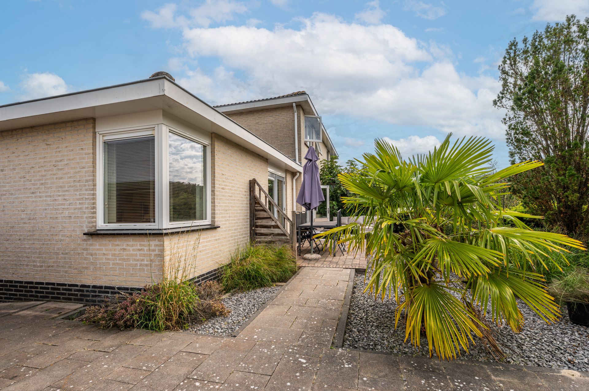 De achtertuin, welke grenst aan de keuken, is grotendeels verhard met klinkers en split en biedt een doorgang naar de straatzijde aan de voorzijde van het perceel.