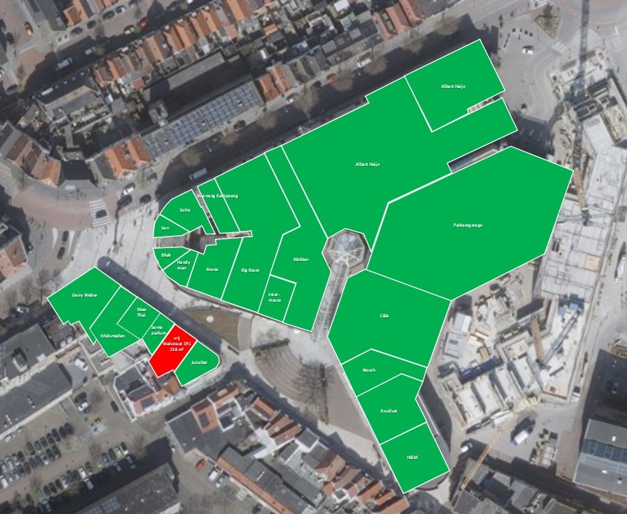 De appartementen op de verdiepingen zorgen voor een bruisende mix van winkelen en wonen, terwijl de nabijgelegen parkeergarage met 325 parkeerplaatsen uitstekende bereikbaarheid garandeert.