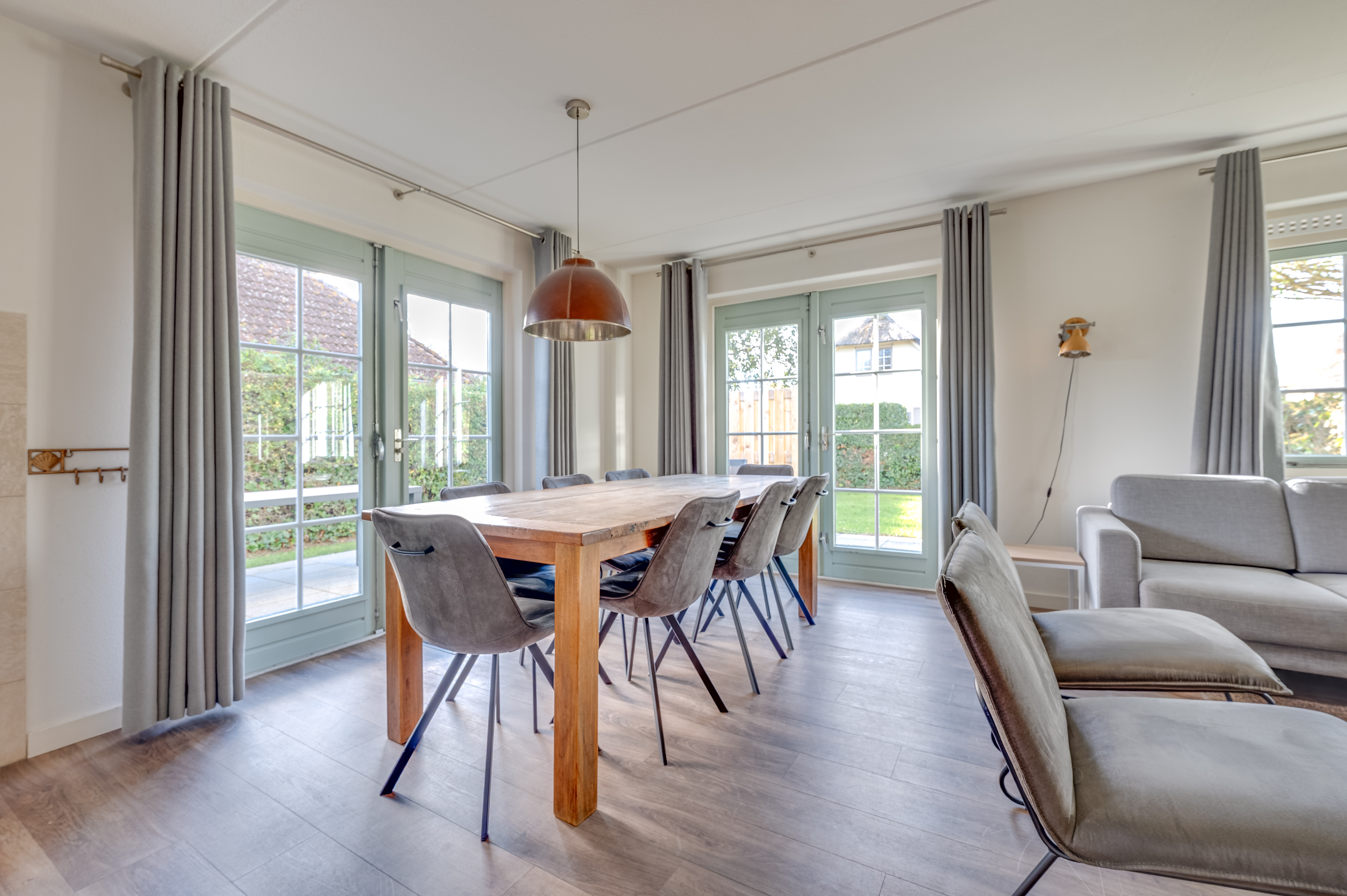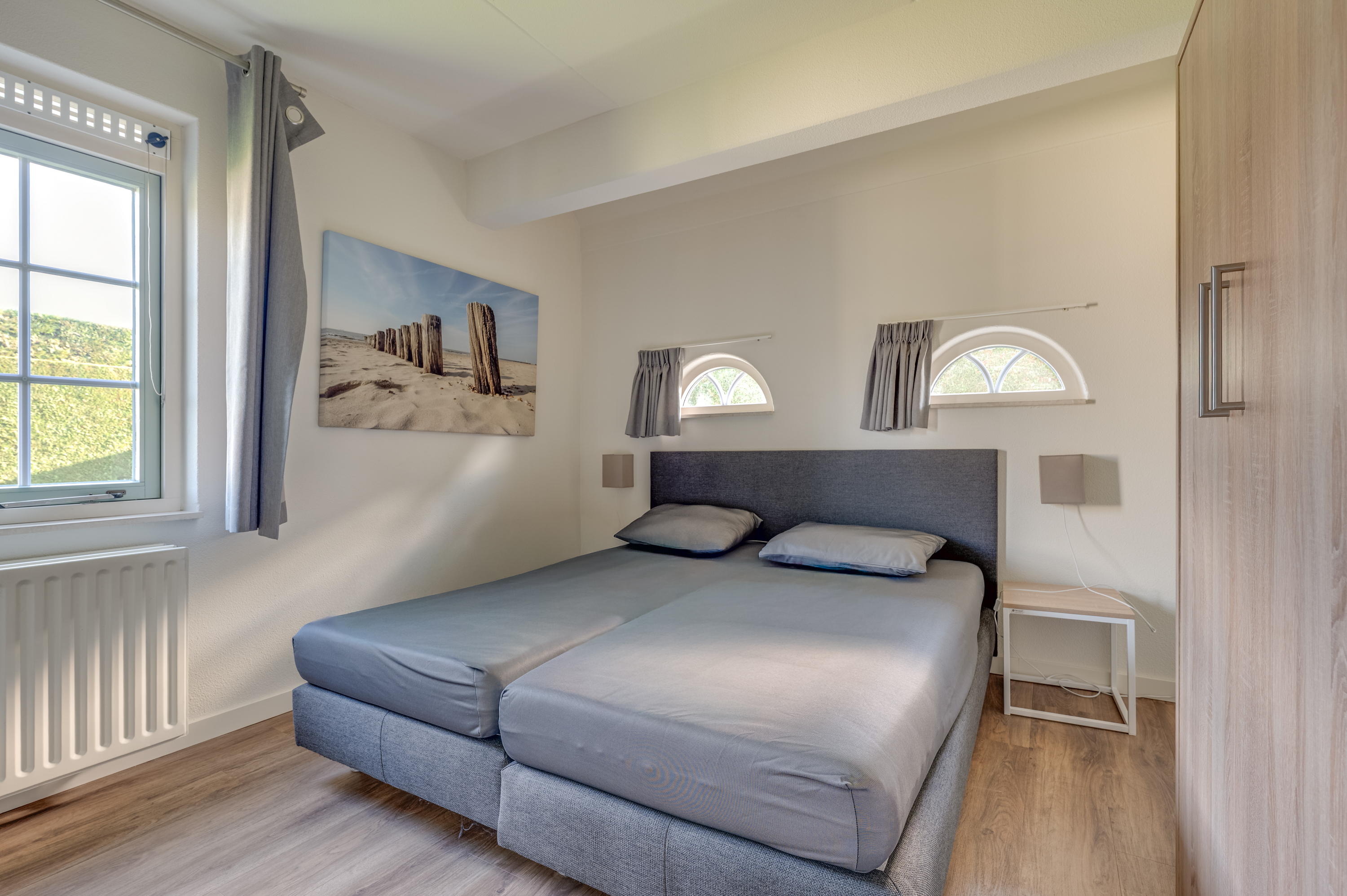 De verdieping biedt drie ruime slaapkamers en een tweede badkamer, zodat iedereen over voldoende privacy en comfort beschikt tijdens het verblijf. Daarmee is deze recreatiewoning uitermate geschikt voor grotere families of verhuur aan groepen tot acht personen.