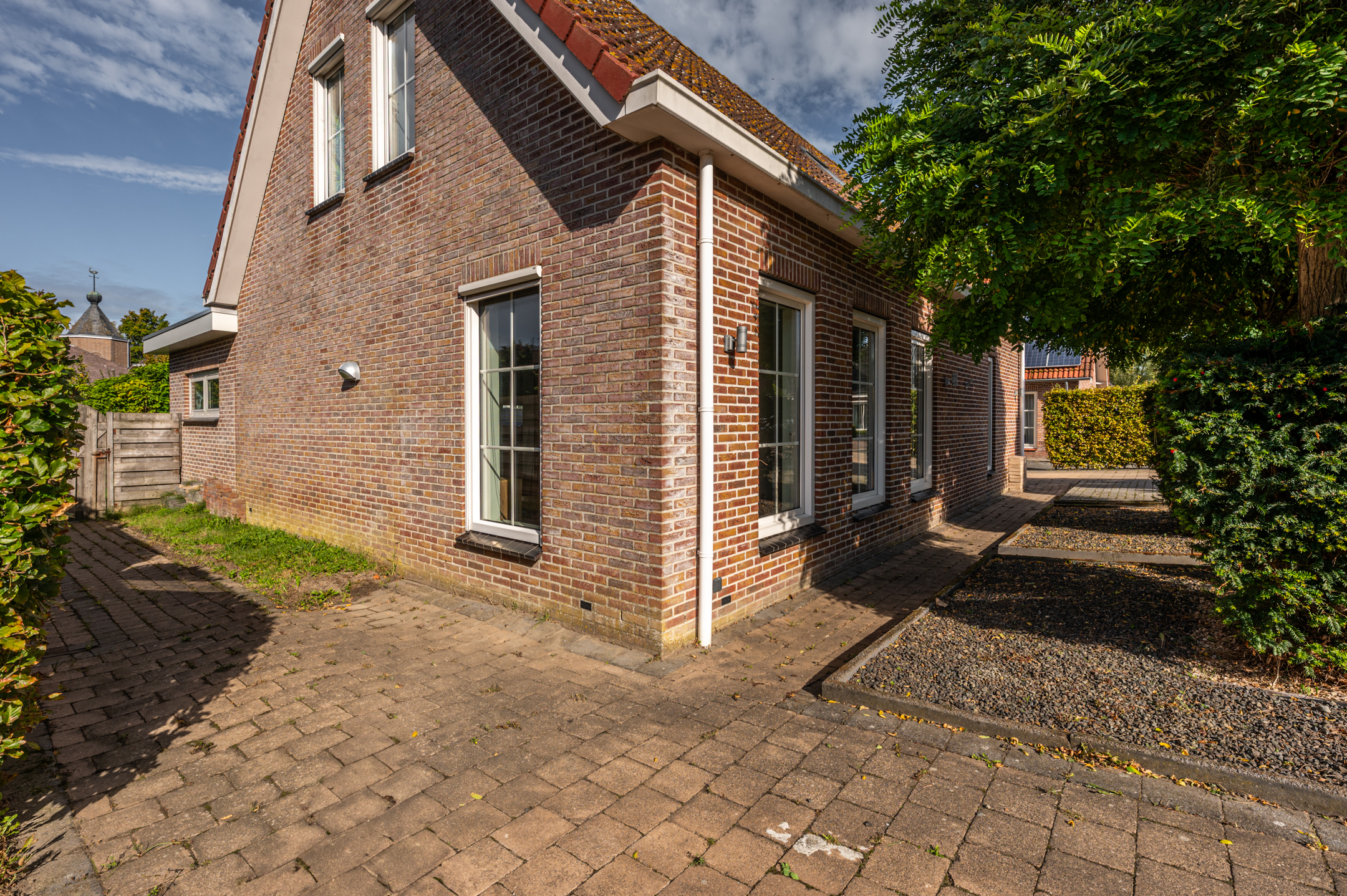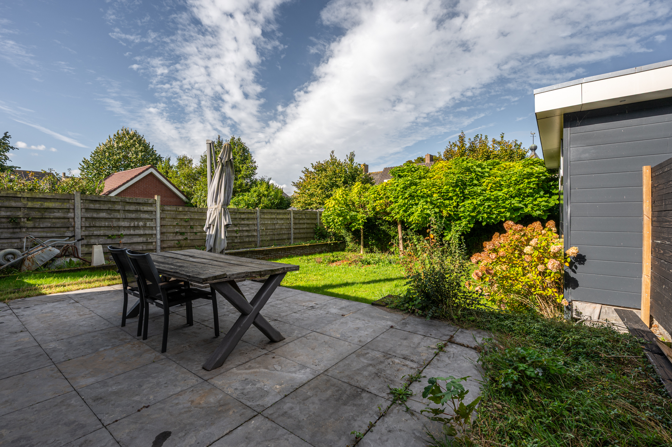 Achter de woning ligt een zonnige tuin, perfect op het westen georiënteerd. Hier geniet je de hele middag en avond van de zon, of je nu op het terras wilt ontspannen of in het groen wilt tuinieren. De tuin is via een achterom bereikbaar en biedt veel privacy.