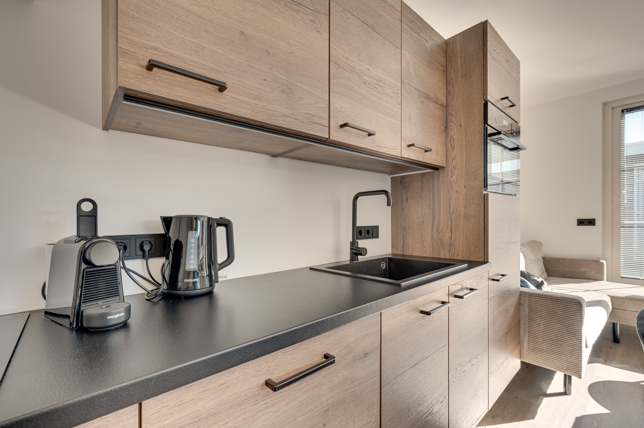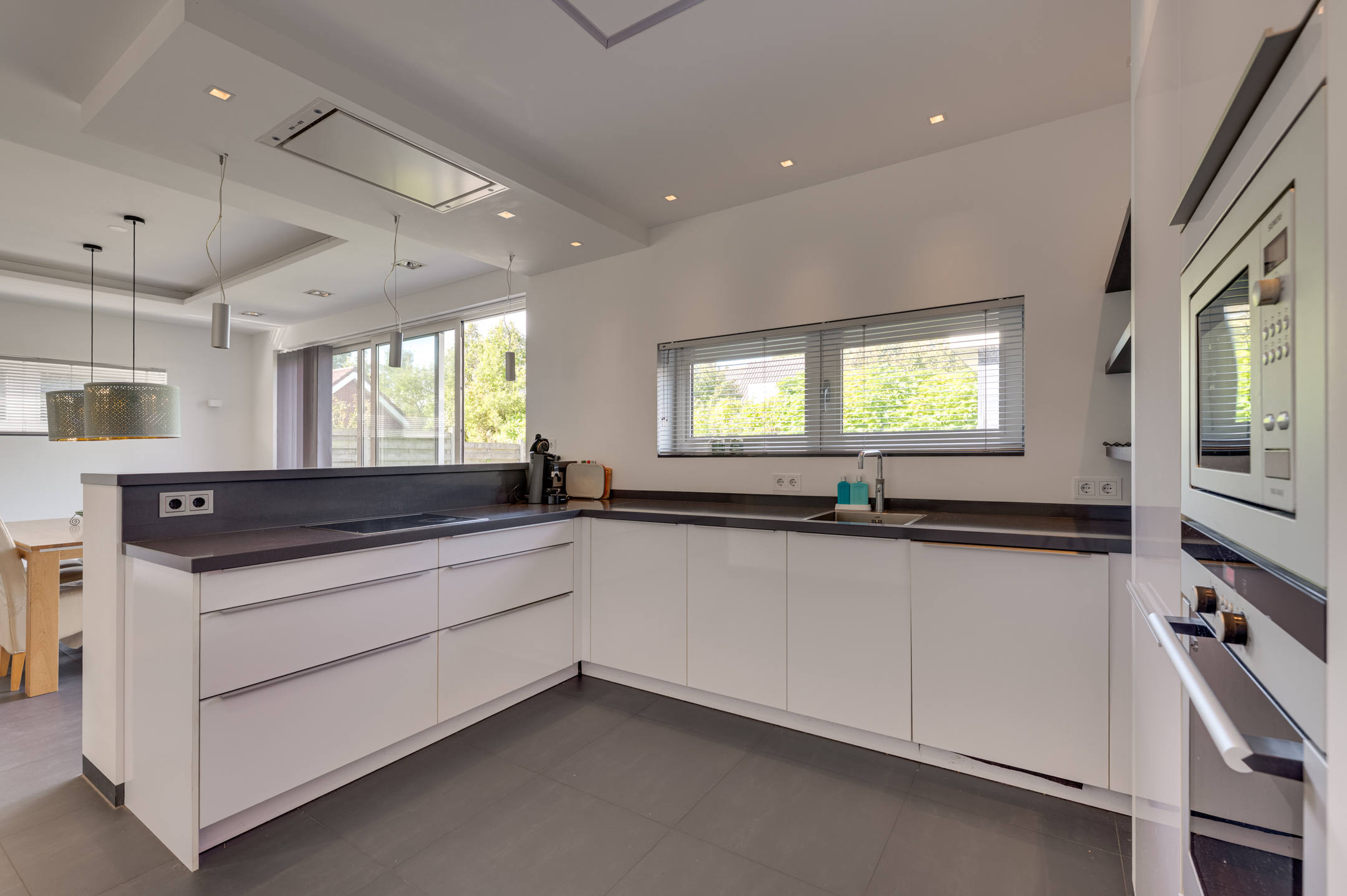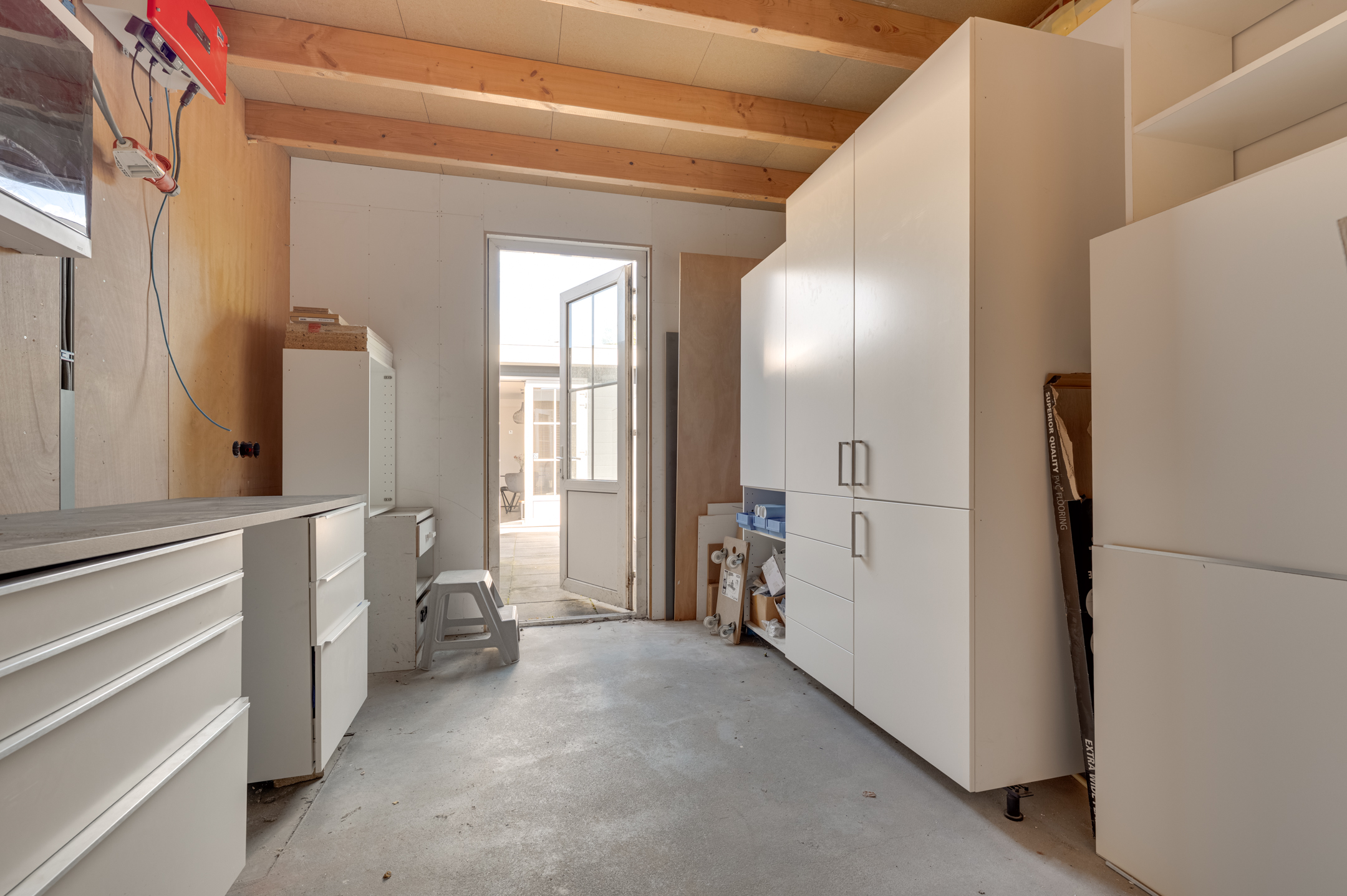 De moderne keuken ligt centraal in het huis en vormt een echte leefruimte, met voldoende werkruimte en een praktische bijkeuken ernaast. Op de begane grond vind je daarnaast nog een kantoorruimte, ideaal voor thuiswerken.