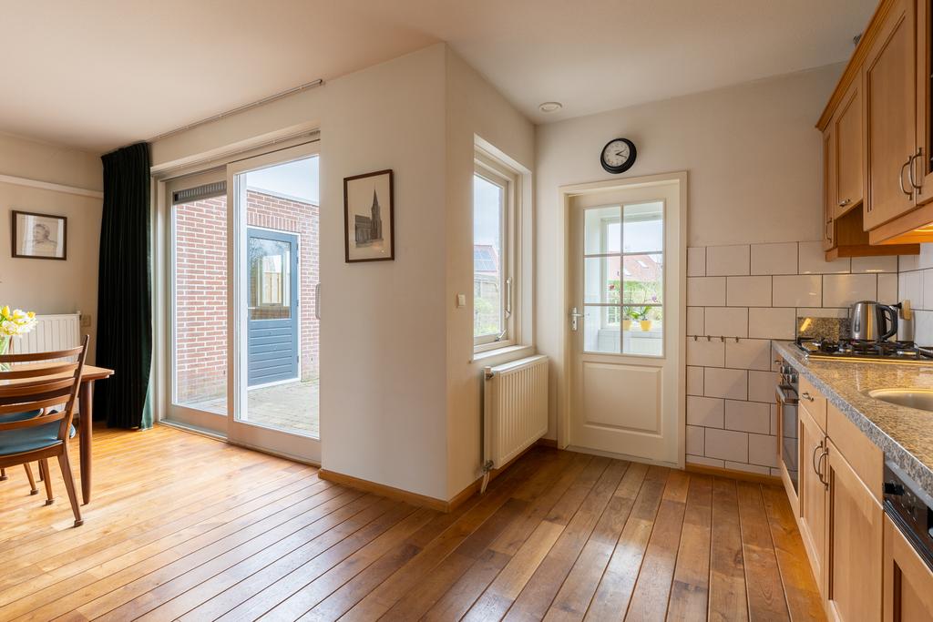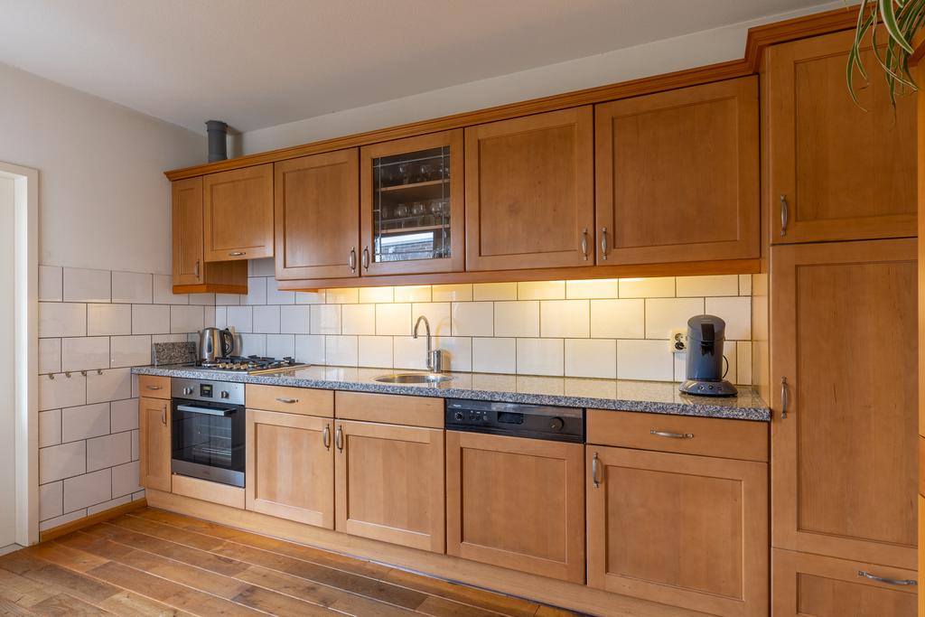Aan de achterzijde van de woning is een open keuken met een royale opstelling met gaskookplaat, afzuigkap, vaatwasser en oven. Vanuit de keuken heeft u toegang tot de praktische bijkeuken waar u de wasmachine aansluiting. Ook kunt u er gemakkelijk een droger en vriezer kwijt.