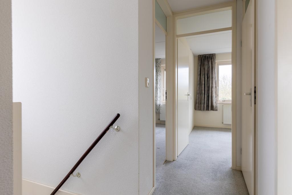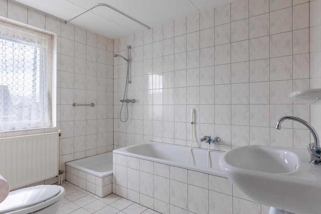 De overloop geeft namelijk niet alleen toegang tot 3 mooie slaapkamers (waarvan 1 met vaste kast), maar ook tot de badkamer. Deze is uitgevoerd met bad, douche, wastafelmeubel en 2e toilet.