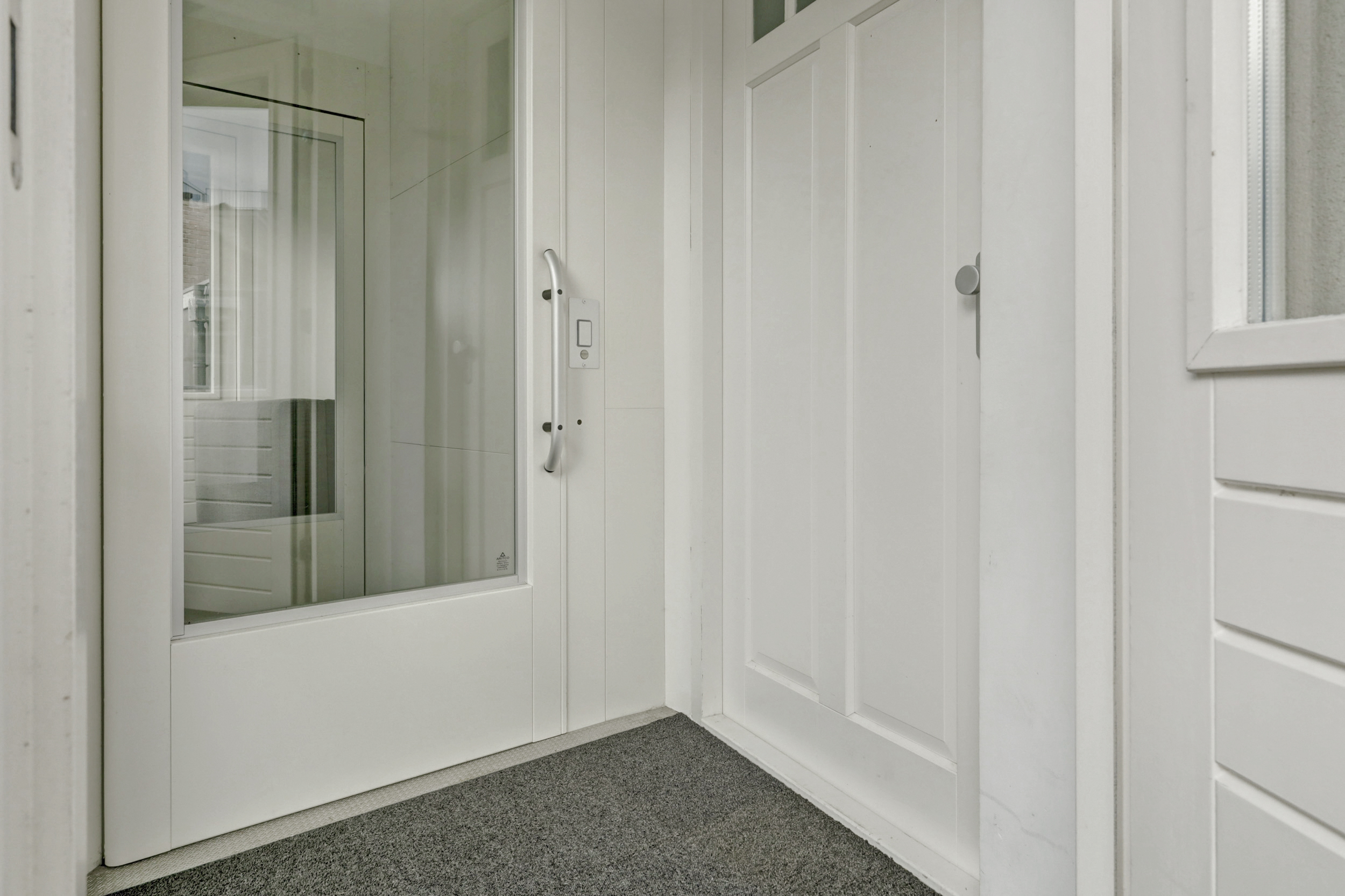 Centrale entree met postbussen en intercominstallatie. Gang met voor ieder appartement een eigen meterkast en toegang tot de ruime, gezamenlijke fietsenberging, de trapopgang en de lift.