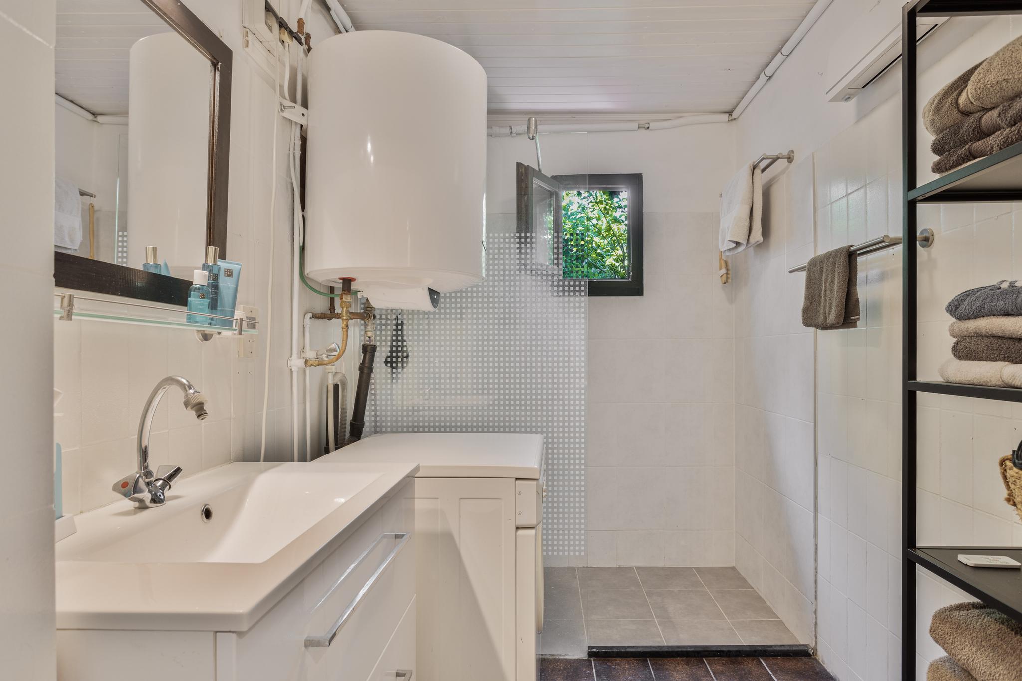 Via de keuken zijn een praktische bijkeuken en de badkamer bereikbaar.