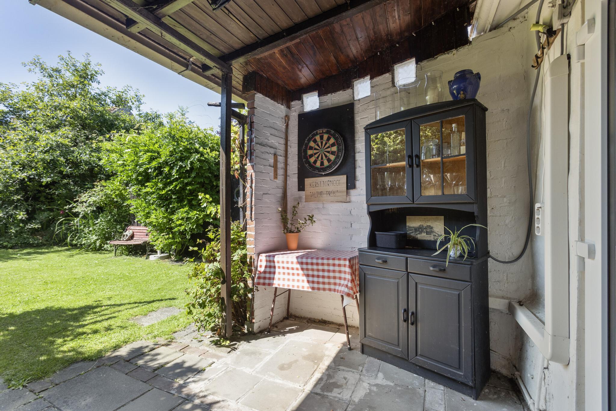 Naast de achterdeur is een leuke overkapping waar u erg fijn kunt zitten. Genietend van het vroegste zonnetje en de ruime tuin. In deze tuin is een oude houten schuur gebouwd. Praktisch en passend bij de sfeer. Er is geen achterom.