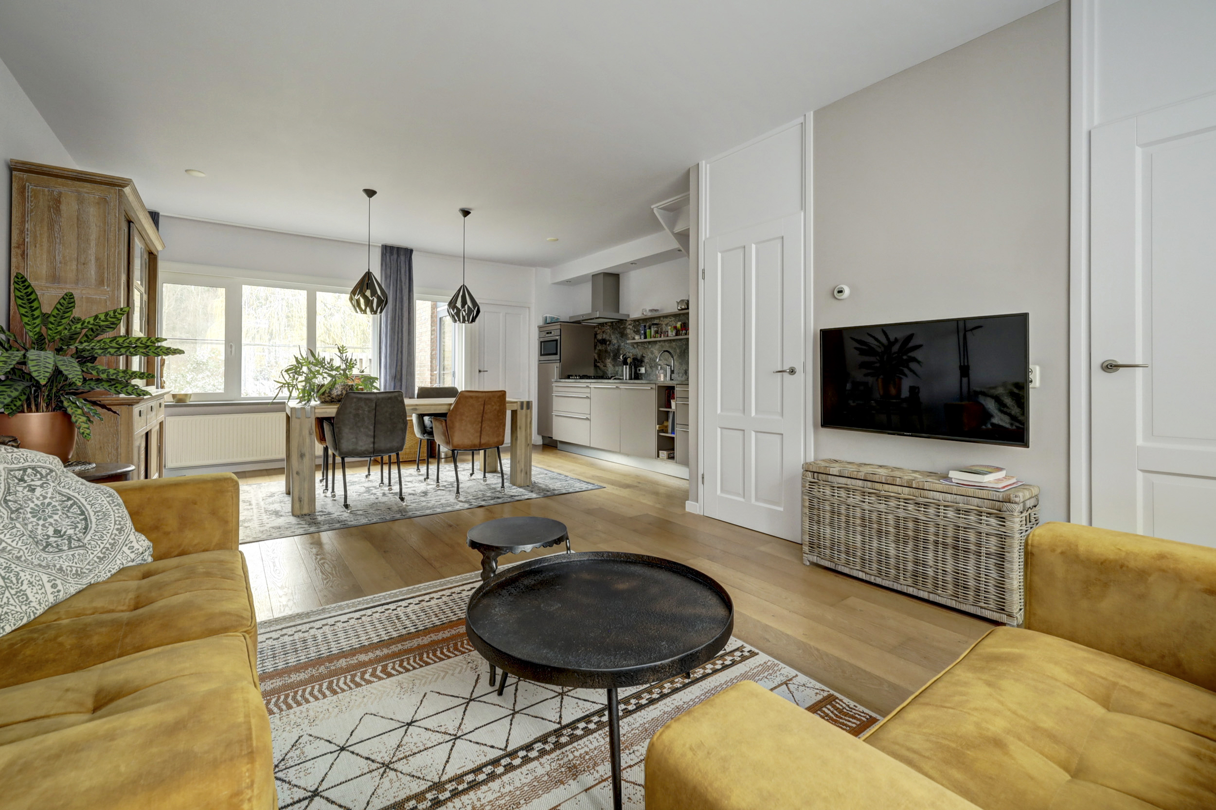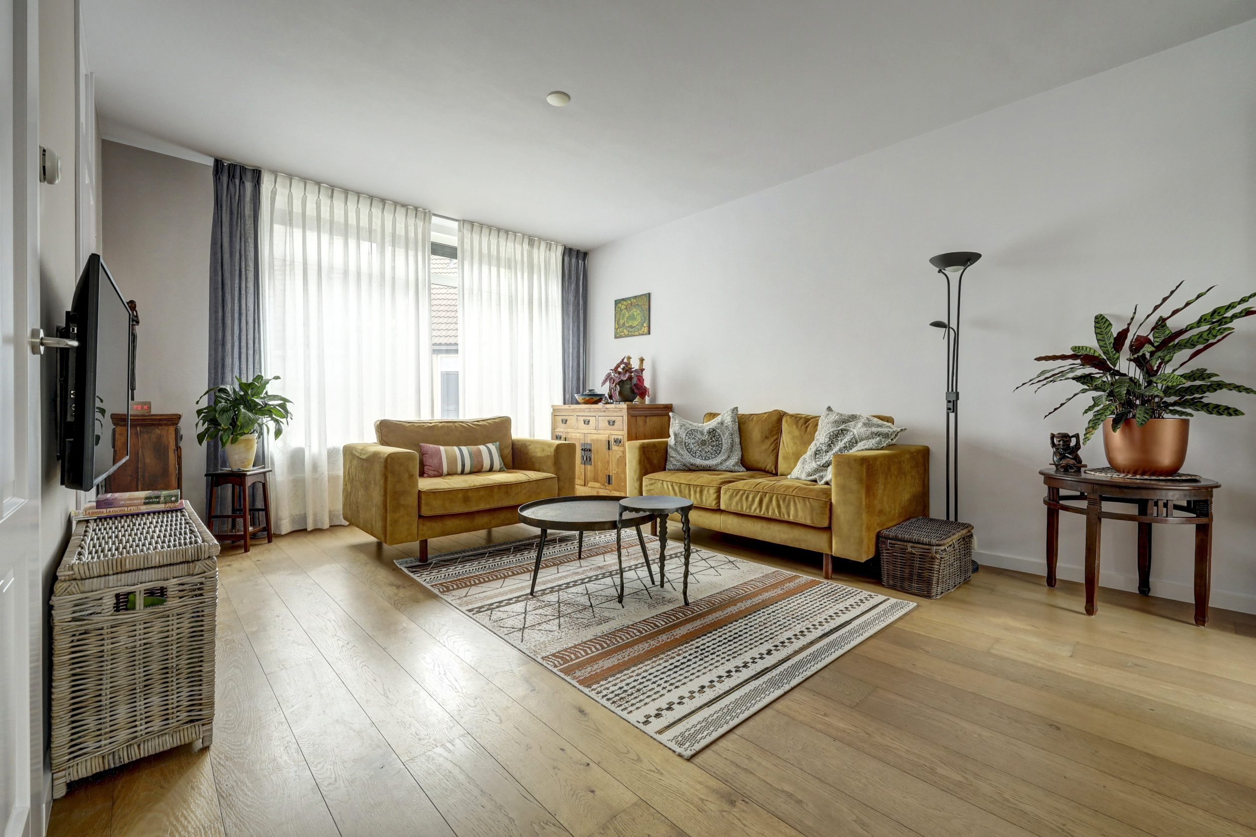 De entree van de woning ligt aan de voorzijde en komt uit in de hal met meterkast en hangtoilet. De hal is verbonden met de woonkamer. De woonkamer, gelegen aan de voorzijde, biedt ruimte en heeft door de raampartijen aan beide kanten veel natuurlijk licht. Aan de achterzijde heeft de woning een ruime leefkeuken met inbouwapparatuur, waarbij de vaatwasser en koelkast recent zijn vernieuwd (2025), de warmwatervoorziening wordt verzorgd door een ingebouwde boiler. Vanuit de keuken is toegang tot de berging, deze staat in verbinding met de tuin.