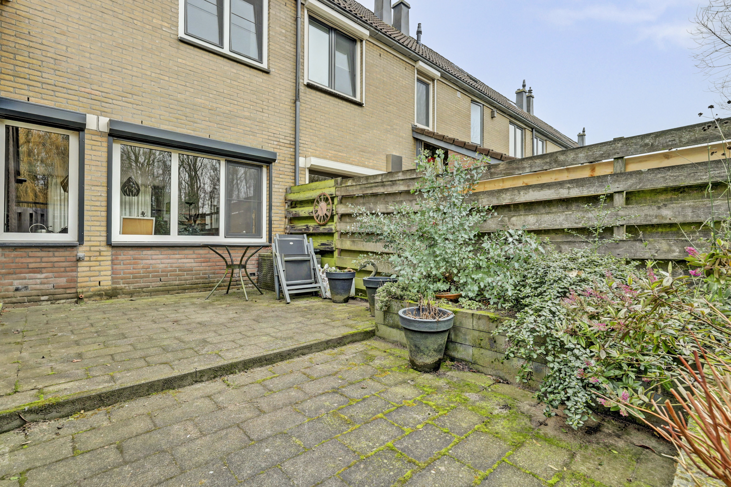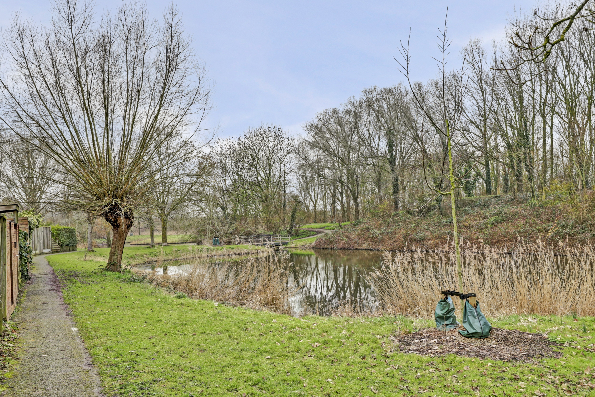 De tuin is op het noorden georiënteerd. De achtertuin met vrije achterom grenst aan water en groen, ideaal voor een wandeling in de groene omgeving. Er zijn in de hele buurt voldoende parkeergelegenheden.