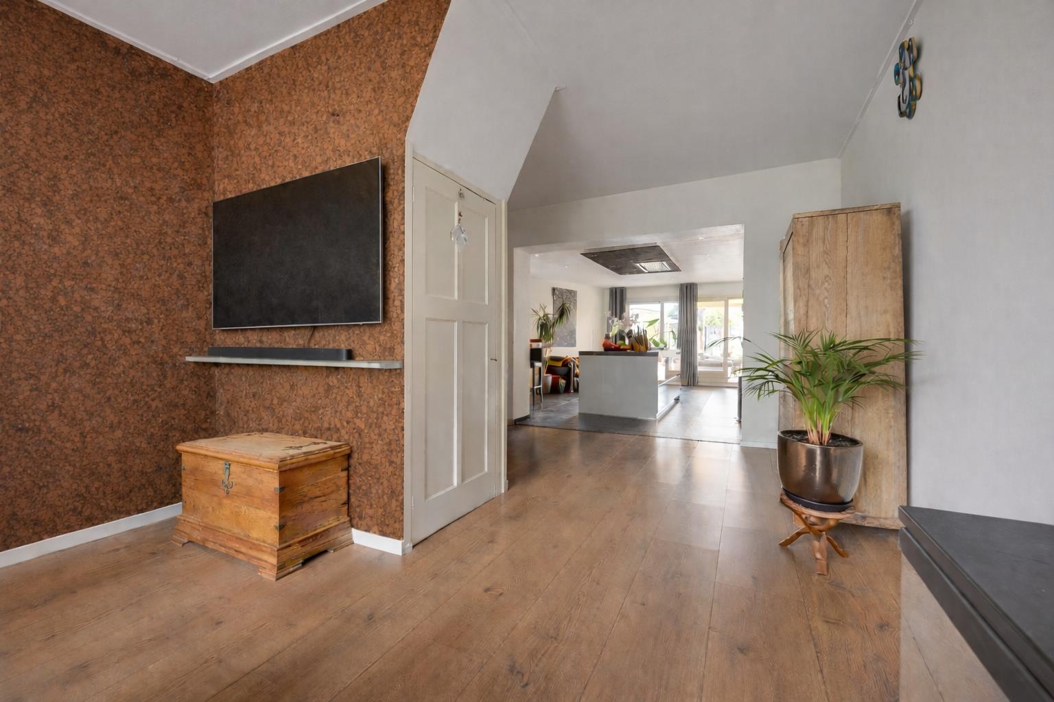 Achter de woning ligt een diepe, zonnige tuin met ruim terras, sfeervolle verlichting en een veelzijdige blokhut. Deze is nu ingericht als luxe gastenverblijf (26 m²) met eigen badkamer, maar biedt ook uitstekende mogelijkheden voor een kleinschalige B&B of een comfortabele werkplek aan huis. Het gastenverblijf heeft een eigen ingang, bereikbaar via een poort in de schutting.