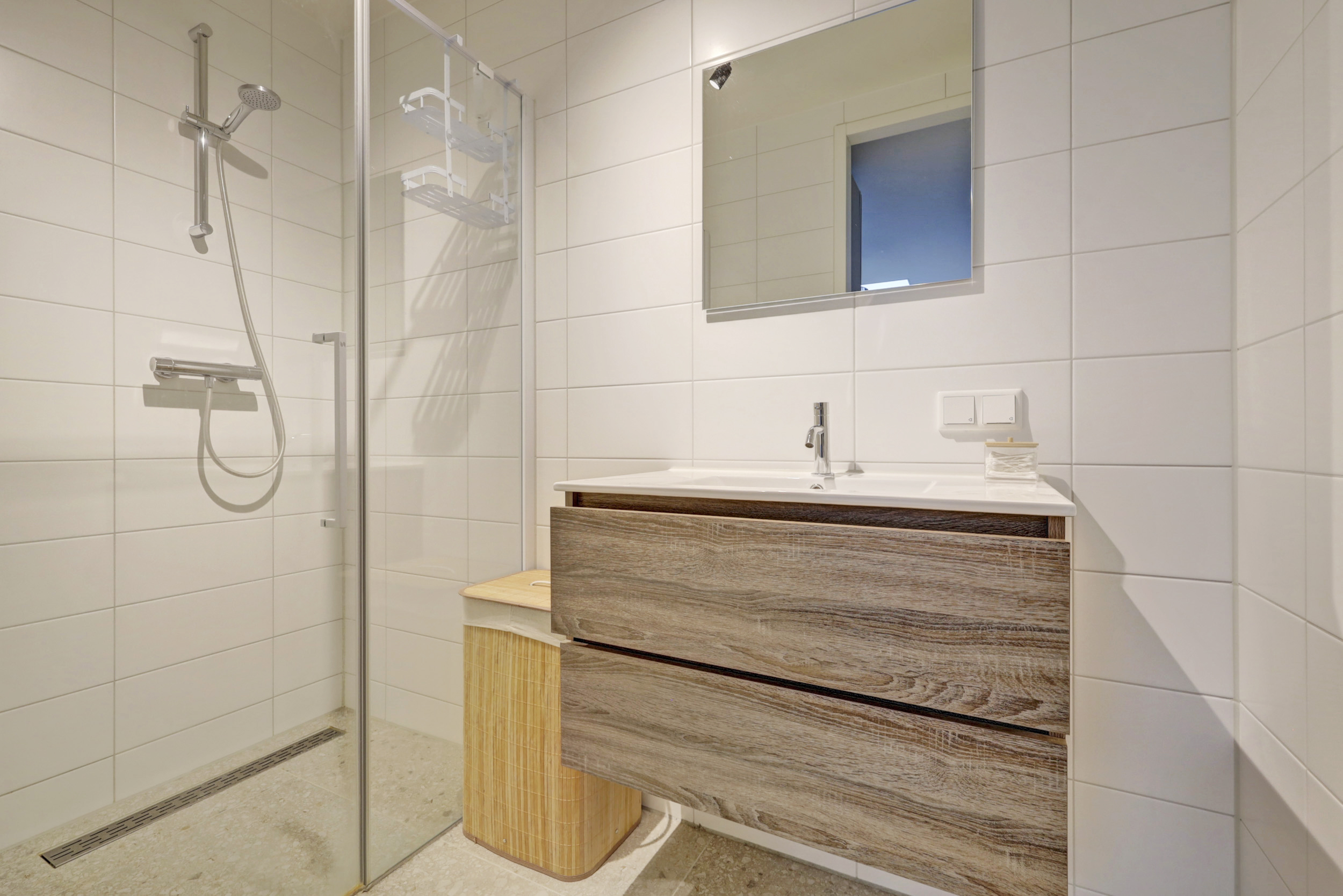Het appartement beschikt over een ruime en lichte slaapkamer. Direct aansluitend aan de slaapkamer bevindt zich de badkamer, wat zorgt voor extra comfort en gemak. De badkamer is uitgerust met een ruime douche en wastafel.