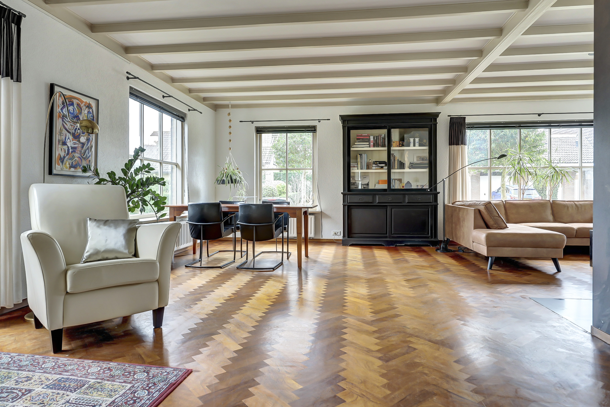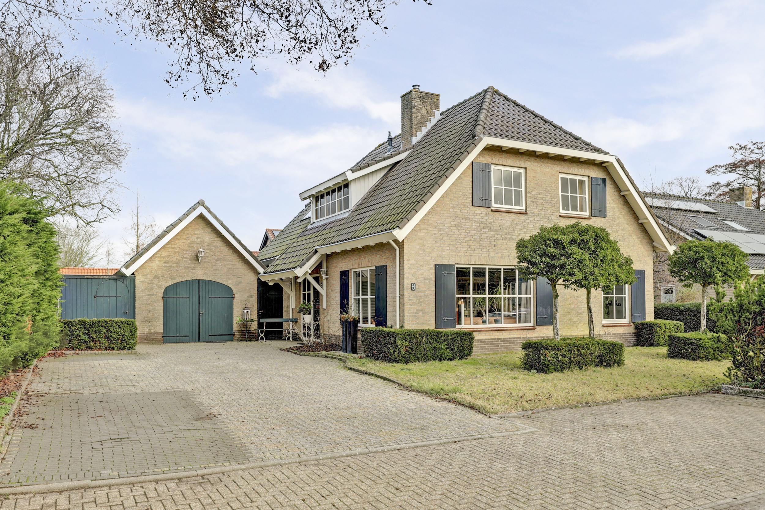 Rondom de woning ligt een verzorgde tuin met volop privacy. Onder de overkapping kun je beschut genieten van het buitenleven, ongeacht het seizoen. De riante oprit biedt plaats aan meerdere auto’s op eigen terrein, wat het geheel niet alleen comfortabel maar ook praktisch maakt.