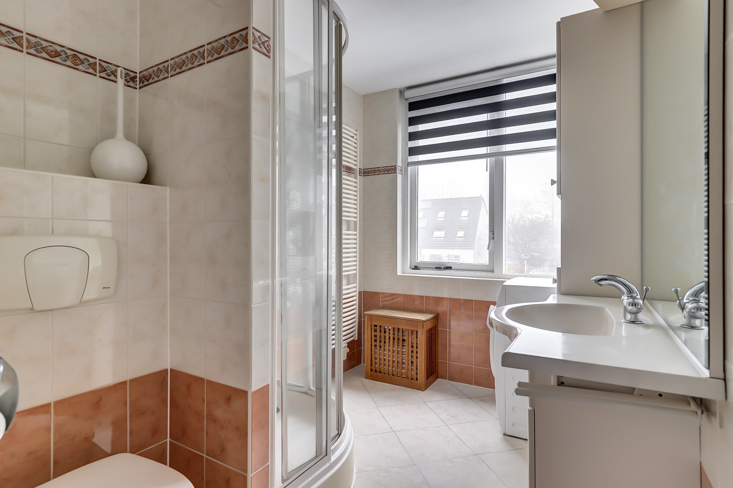 De keuken is in 2020 vernieuwd en uitgevoerd in een houtlook. De badkamer beschikt over een douche, toilet, wastafel en aansluiting voor het witgoed. Het toilet op de begane grond is ook in 2020 vernieuwd en gemoderniseerd.