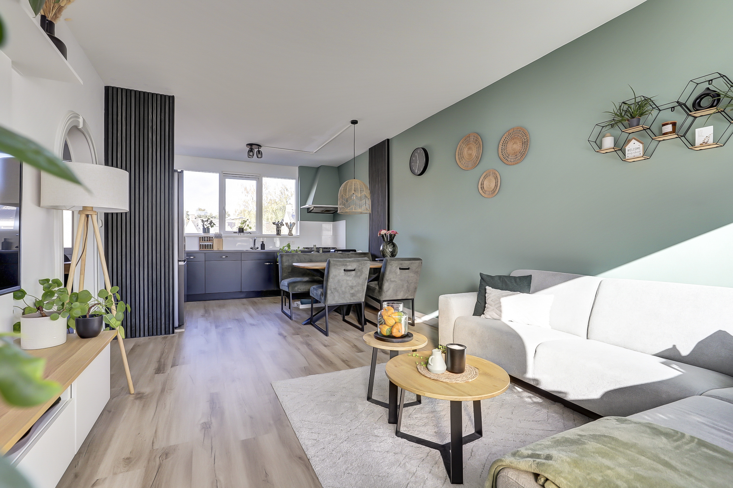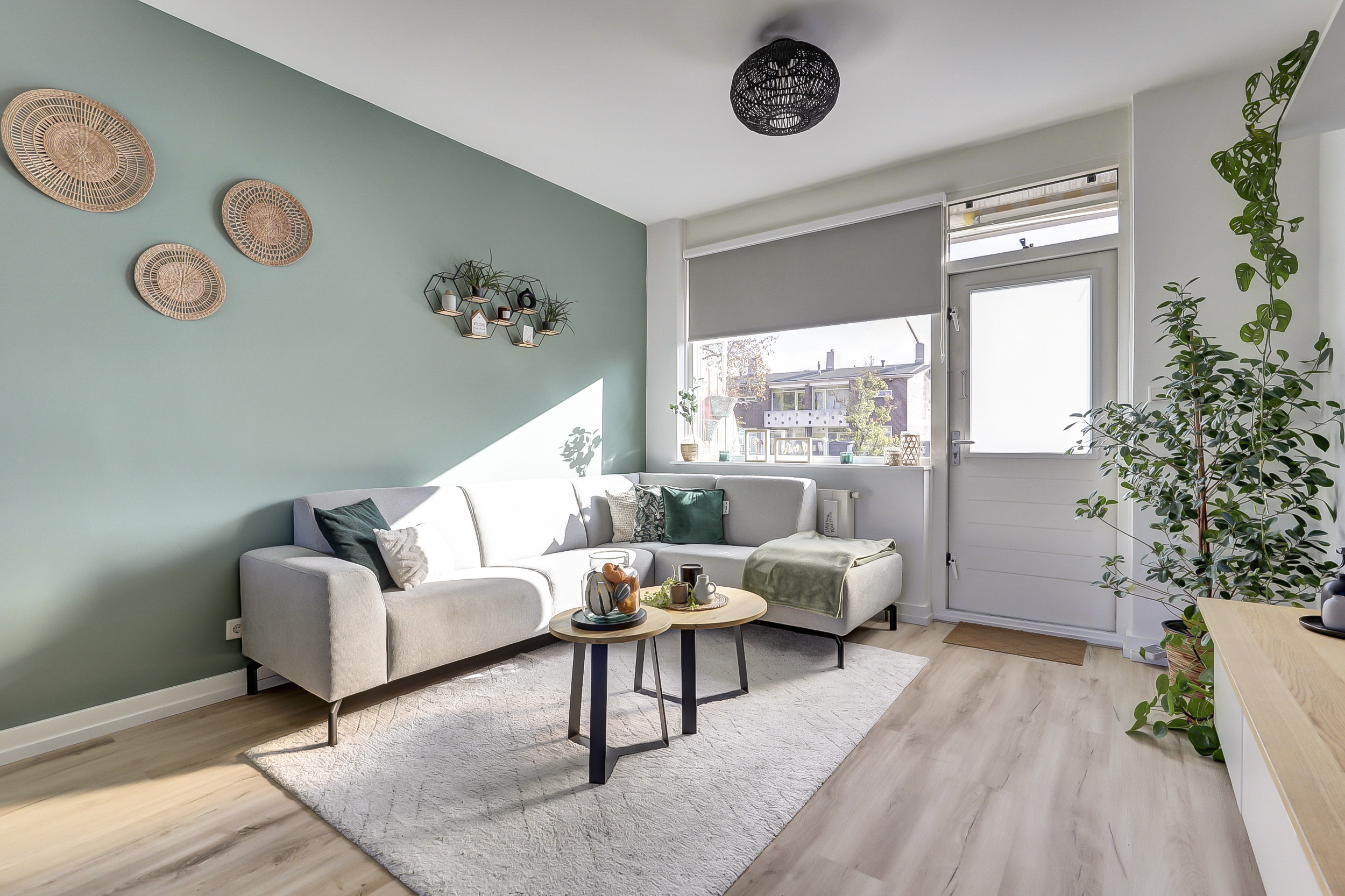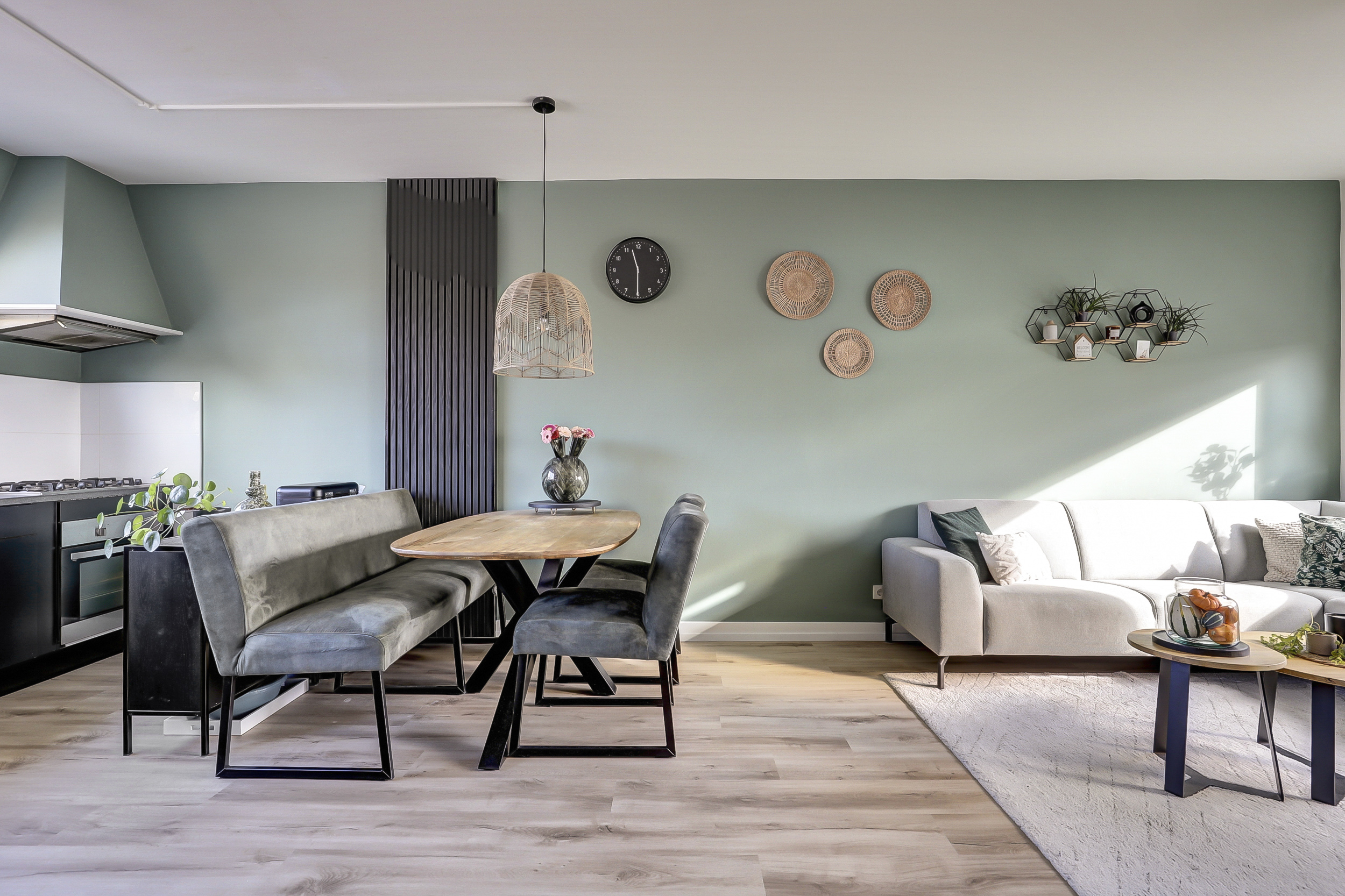 Tussen de twee ruimtes bevindt zich de trap.