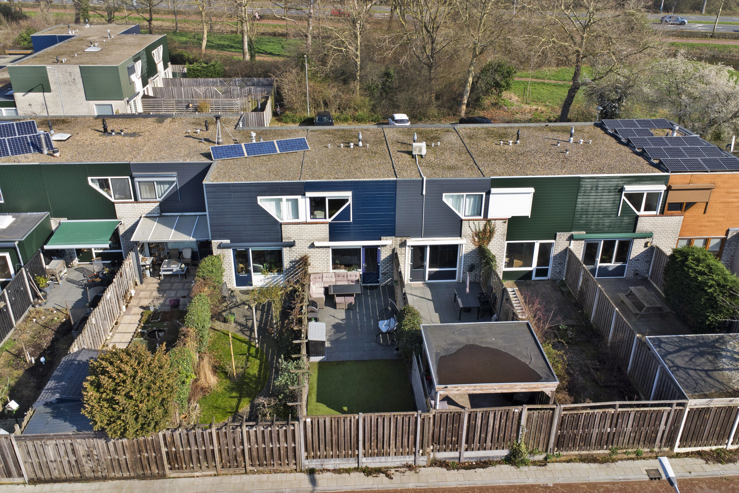 De achtertuin ligt op het zuidwesten, waardoor je hier heerlijk van de middag- en avondzon kunt genieten. Daarnaast is de tuin voorzien van zonwering aan de achterzijde, wat op warme dagen zorgt voor extra comfort. Ook is er een aparte berging aanwezig.