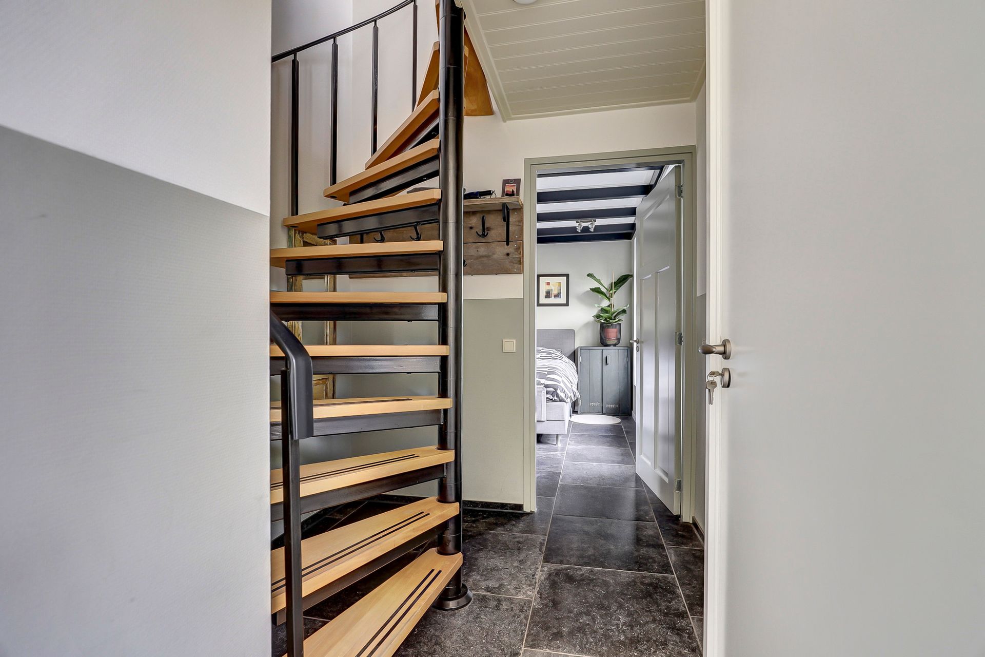 De begane grond biedt een ruime entree, een lichte woonkamer met authentieke balken en een gezellige gashaard, een luxe slaapkamer met en-suite badkamer en een moderne keuken die uitkijkt op de zonnige tuin. Op de eerste verdieping vind je nog een royale kamer die nu als kantoor wordt gebruikt, een tweede slaapkamer met eigen badkamer en slimme voorzieningen voor wasapparatuur. De zolderverdieping biedt volop extra bergruimte.