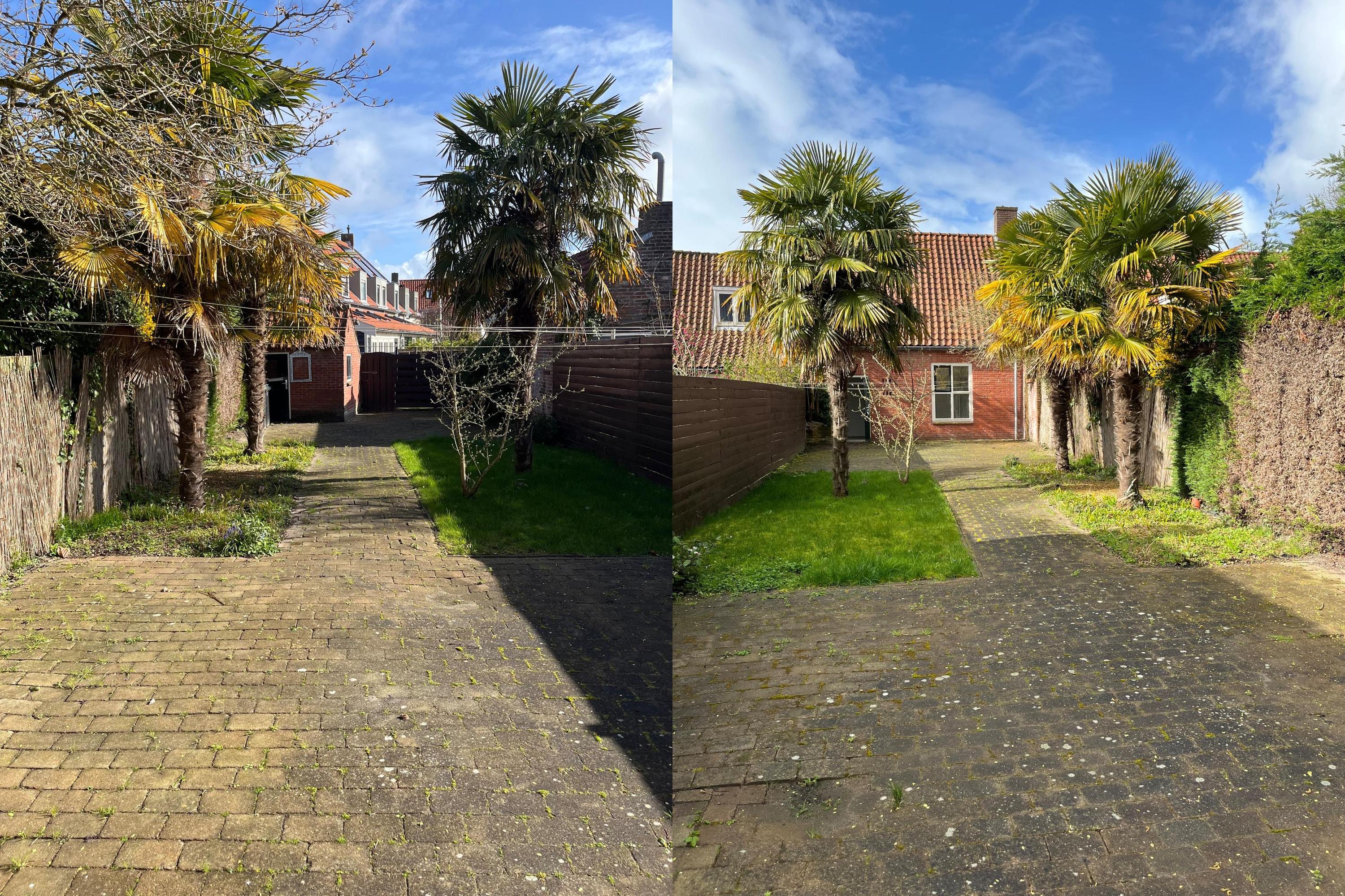 De diepe achtertuin is een van de echte pluspunten van deze woning. Gelegen op het noordoosten, is dit een heerlijke plek om te genieten van de ochtend- en middagzon. Achter in de tuin staat een berging en er is een praktische achterom, ideaal voor fietsen of tuinafval.