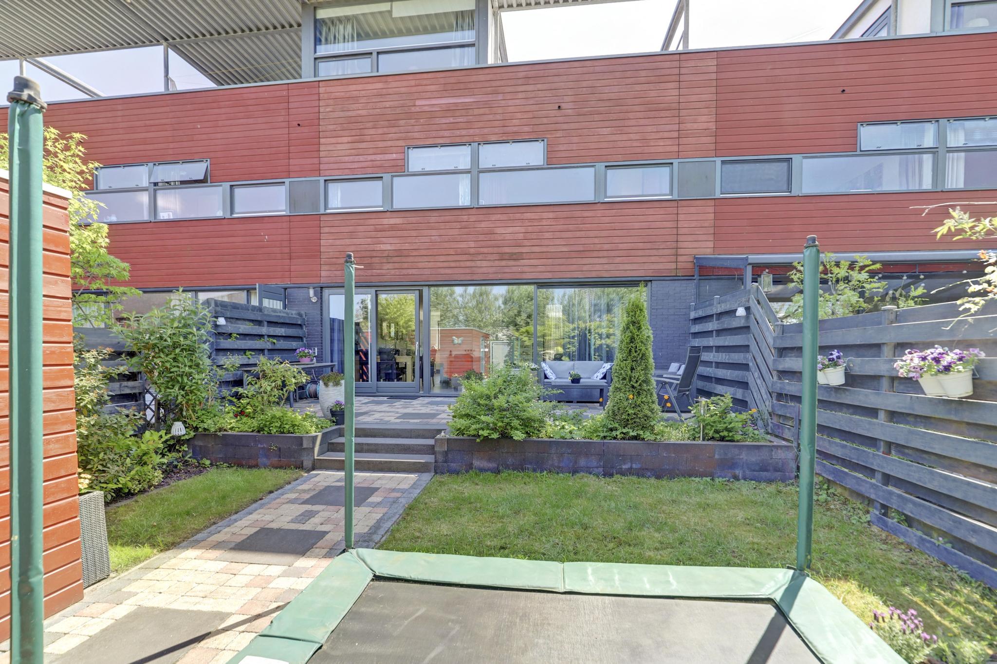 Binnen valt meteen de lichte en ruime woonkamer op, die in open verbinding staat met de keuken en uitzicht biedt op de achtertuin. De tuin is verzorgd aangelegd, beschikt over een praktische berging en is bereikbaar via een vrije achterom, handig voor fietsen of spelende kinderen. Op de verdiepingen bevinden zich vier goed bemeten slaapkamers, waardoor er volop mogelijkheden zijn voor gezinnen of werken vanuit huis.